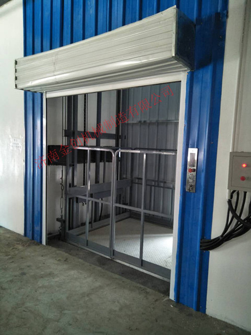 這臺在天津安裝完成的升高6米,載重3噸的鏈條導軌式液壓升降貨梯,采用電動卷簾門聯(lián)動控制,彩鋼板外封結構,結構堅固,承載量大,升降平穩(wěn),安裝維護簡單方便,是經濟實用的低樓層間替代電梯的理想貨物輸送設備.常常用于二三層工業(yè)廠房,餐廳,酒樓樓層間的貨物傳輸。鏈條式液壓升降貨梯最低高度在150-300mm,尤其適合不能開挖地坑的工作場所.