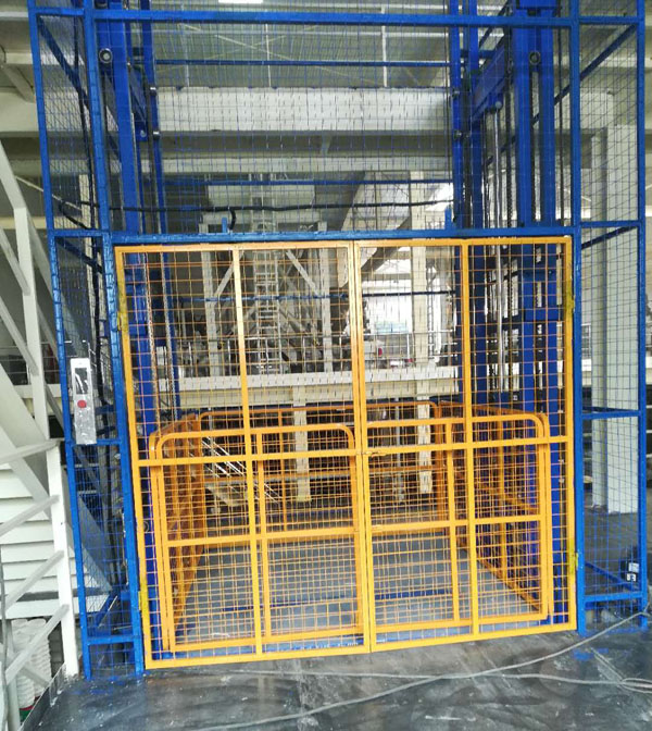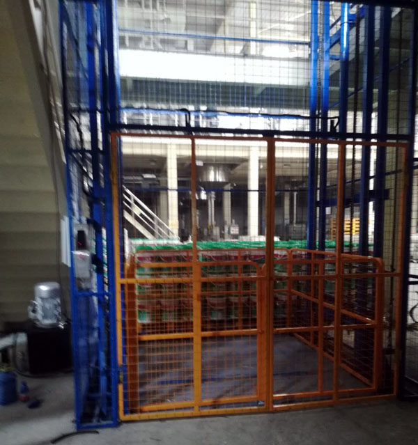 帶外防護(hù)導(dǎo)軌式液壓升降機(jī)在涂料廠(chǎng)安裝完成
